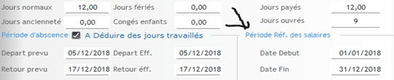 Nous constatons le Début et la Fin des périodes de référence des salaires sont automatiquement renseignés sur la demande de congés.